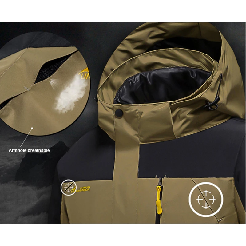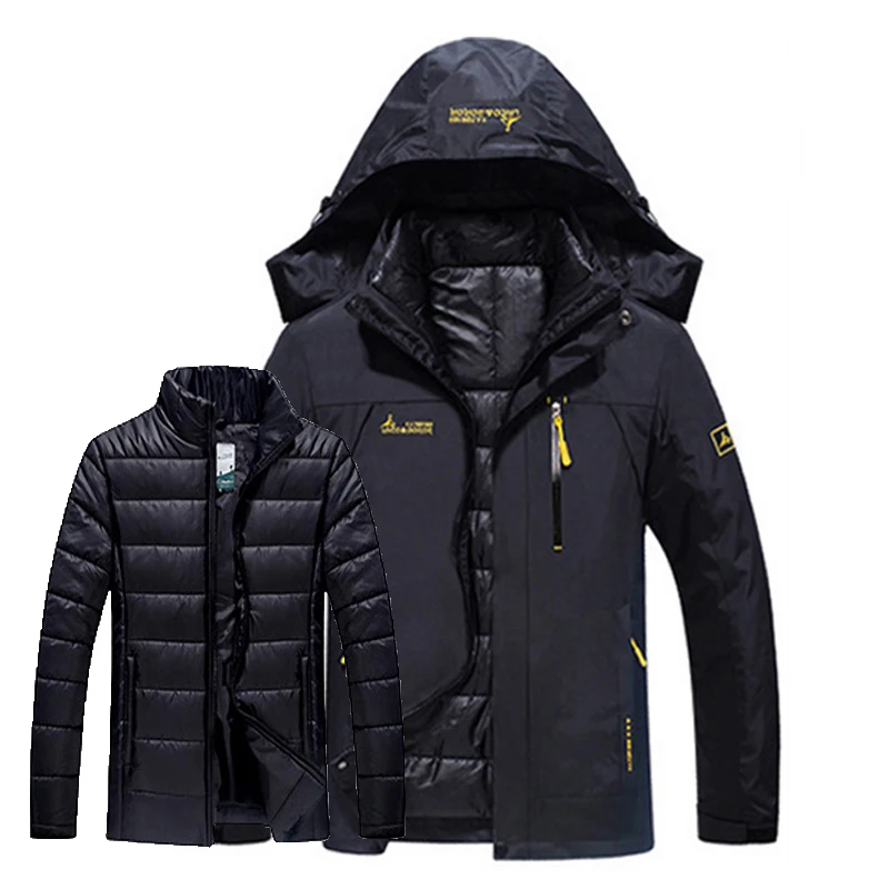 Men Winter Waterproof Hood Fish Thermal Warm Plus Size Trekking Hiking Camp Ski Climb 3in1 Detachab