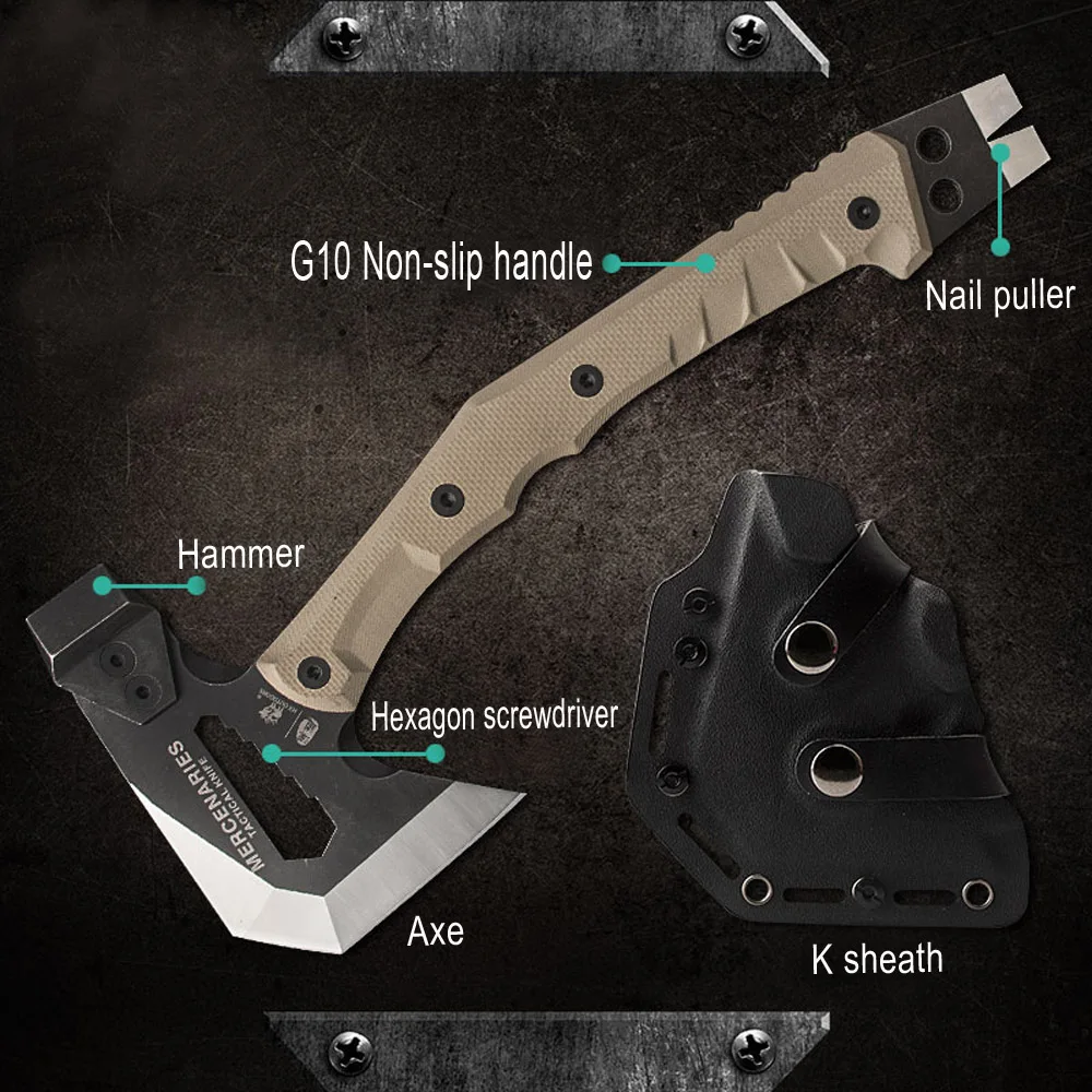 TOP King Sea Outdoor Tactical Axe and Folding Knife Set Camping Axe and Hunting Knife Multifunctional H
